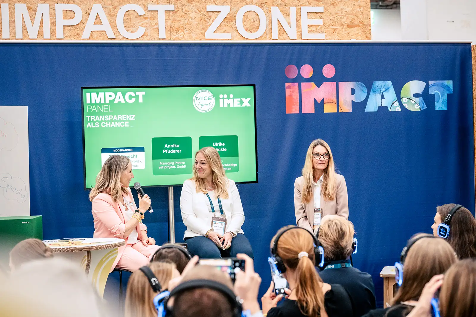 Die Impact ZONE by MICE Impact auf der IMEX in Halle 9 ist der Place to be für alle, die die Zukunft der MICE-Branche aktiv mitgestalten wollen! Hier treffen Eventplaner:innen, Supplier, Destinationen, Medienvertreter:innen und Start-ups aufeinander – offen, inspirierend, lebendig.